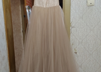 Покупала платье на выпускной. Надевала всего 1раз. Размер 42. Также к платью есть подъюпник и чехол.