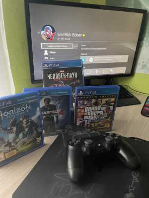 Продают пс4 slim 1tb,в комплекте 2 джойстика и 4 игры.